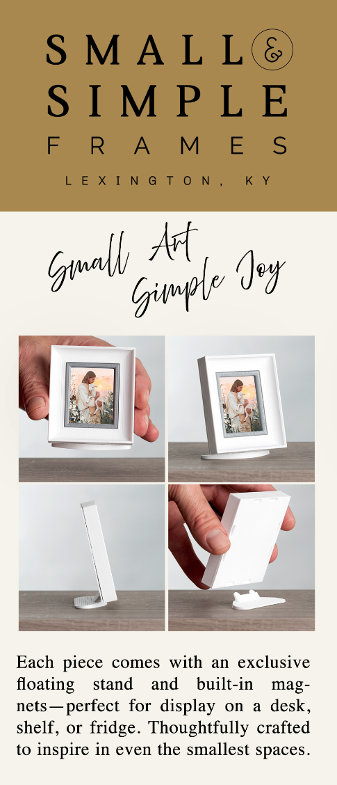 Measuring just 3″ x 2.75″, each frame includes internal magnets for display on metal surfaces and a floating stand that creates the illusion of artwork hovering when placed on a desk or shelf. These thoughtfully designed pieces bring daily inspiration into your home, workspace, or anywhere you need a gentle reminder of the Savior’s love.